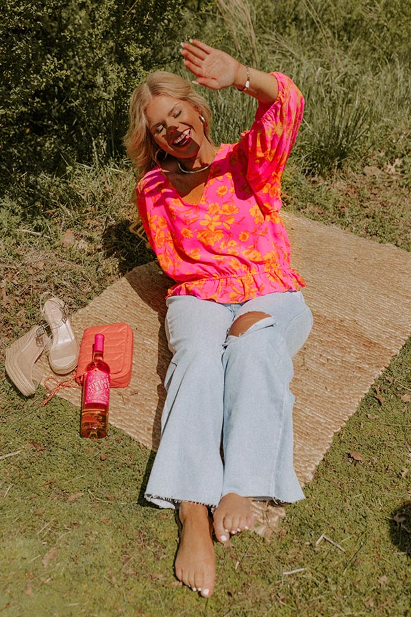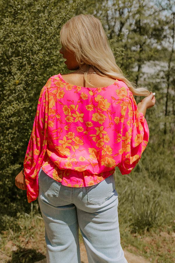 Cute Casa Floral Top In Neon Pink Curves