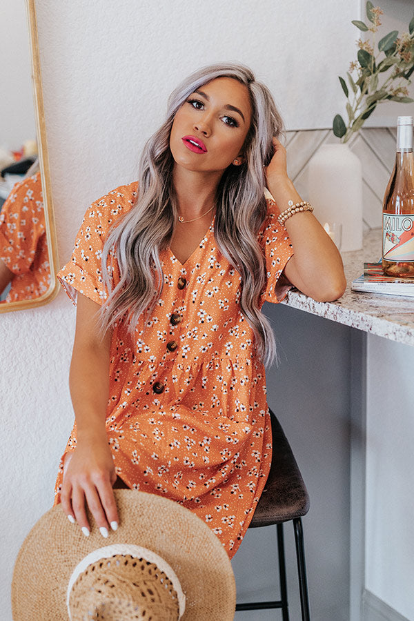 Dance It Out Floral Babydoll Tunic Dress In Tangerine Image - 1