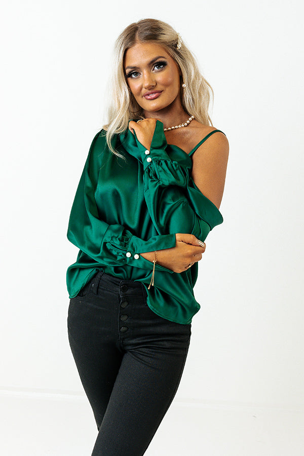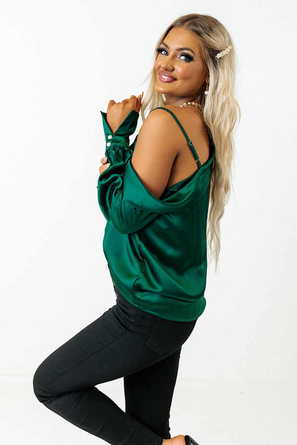 Date Night Ready Satin Top In Hunter Green