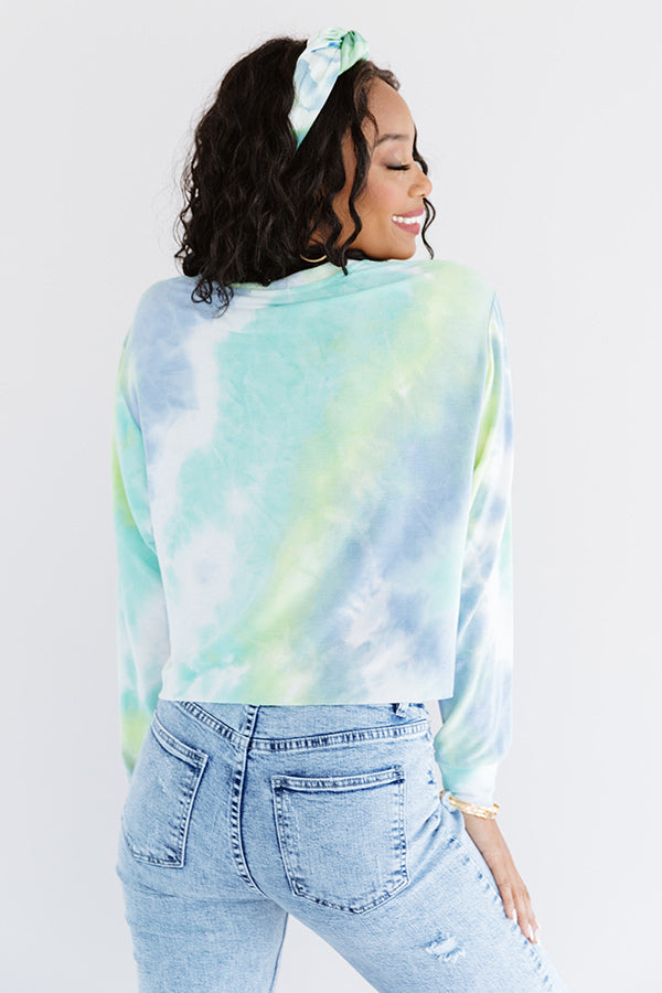 Dream On Dreamer Tie Dye Crop Sweatshirt In Blue