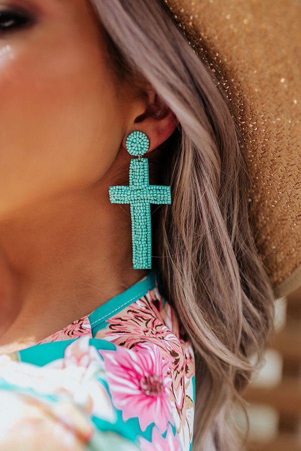 Make a statement with our gorgeous turquoise 'Extra Hopeful' earrings featuring beaded circle studs and dangling beaded crosses!