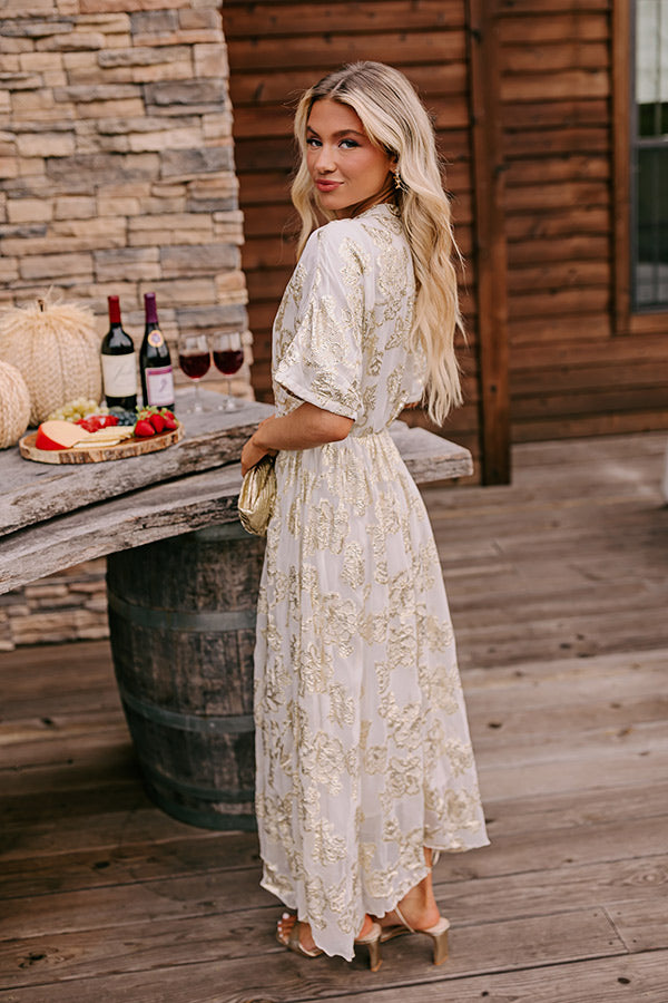- Add a dash of whimsy to your wardrobe with this romantic dress! Its gorgeous, shimmering floral pattern and flowy silhouette is sure to sweep you of your feet.