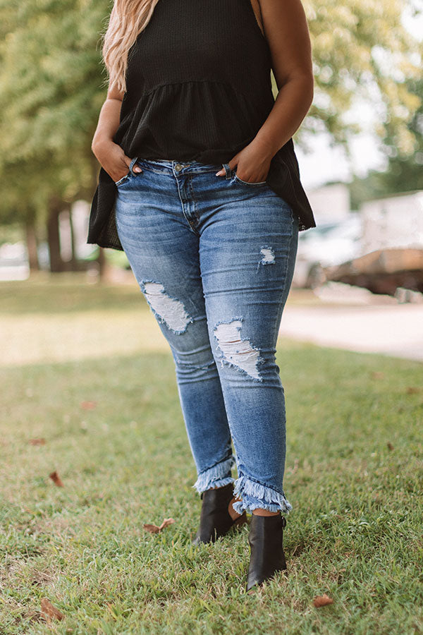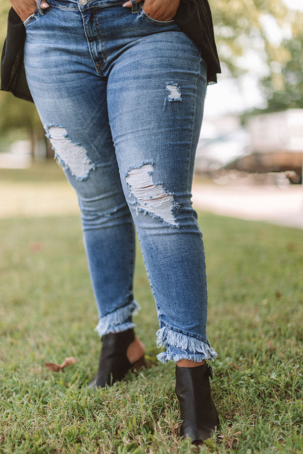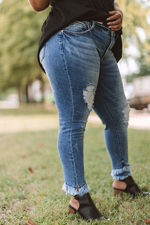 Plus Size - These pants fit you in all the right places, as they should! The "Malibu" skinnies features medium wash denim, distressed detailing, a mid-rise fit, a skinny pant leg with an asymmetrical double frayed hem, a classic 5-pocket cut with belt loops, and a hidden zip fly with a button closure! These trendy bottoms will transition you from season to season when you wear them with your favorite open toed heel and tank top in the summer and with booties and a sweater in the fall!