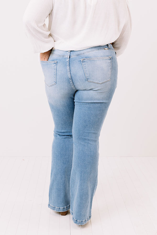 KanCan The Nikky Midrise Distressed Flare in Light Wash Curves