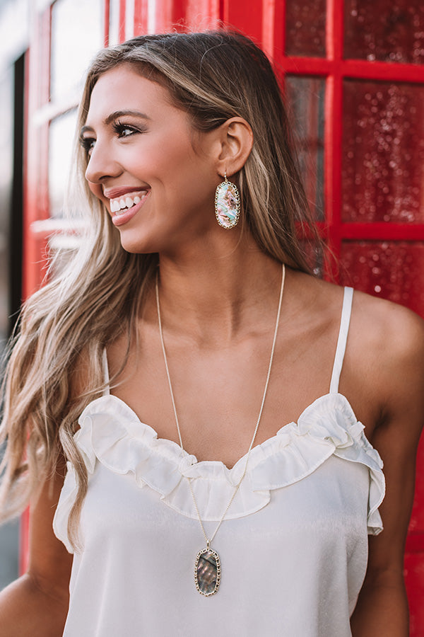 A beloved style with brand new detail, you'll adore the "Macrame Danielle Gold Statement Earrings in Nude Abalone!" With our signature silhouette surrounded by intricacy, these statement earrings will be outshined only by you! Pair with your favorite pieces or let them stand out on their own, either way you're sure to catch compliments in the "Macrame Danielle Statement Earrings!"