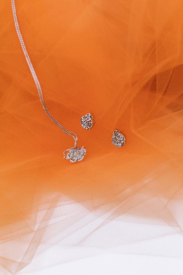 Your friends will be envious of these earrings! Subtle metal detailing frames our pentagon-shaped stone in the Tessa Silver Stud Earrings in Platinum Drusy, an artful addition to any look! Dress these stud earrings up for a night out or dress them down for a day at the office! However you wear them, our Tessa Silver Stud Earrings are a great addition to everyone's jewelry box!