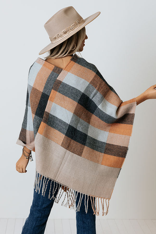 Key To Cozy Plaid Poncho In Light Pumpkin