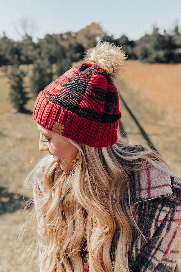 Kisses And Cabins Fleece Lined Checkered Beanie In Crimson