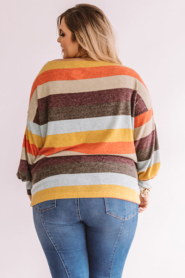 Plus Size - Our green hued "Kisses And Cabins" shift sweater is a year round fave with its soft lightweight tight knit material with very subtle ribbed texturing, horizontal colorful accent stripes, a high rounded neckline, long loose bishop sleeves with fitted cuffs, and a relaxed silhouette that falls into a straight hemline! You can style this charming transitional piece a variety of ways, like with some denim flares, neutral booties, and a matching tote, or with some black skinnies, our "Say It Ain't Soho Hat in Marigold," and "The Seraphina Faux Leather Wedge in Brown!" Measurements
