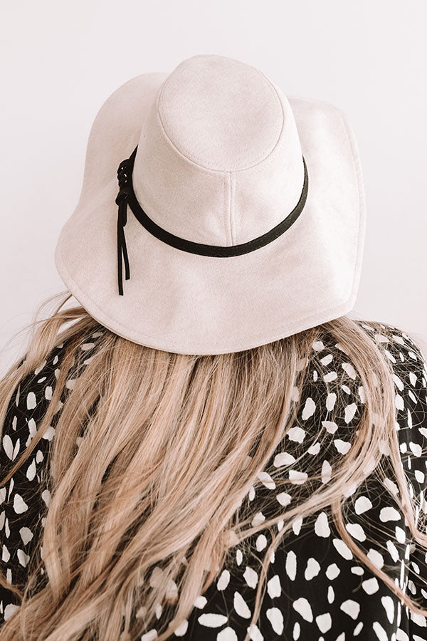 Top off your OOTD in the most stylish way with our white hued "Making Music" hat featuring soft faux suede material, a wide floppy brim, and a tied black accent band!