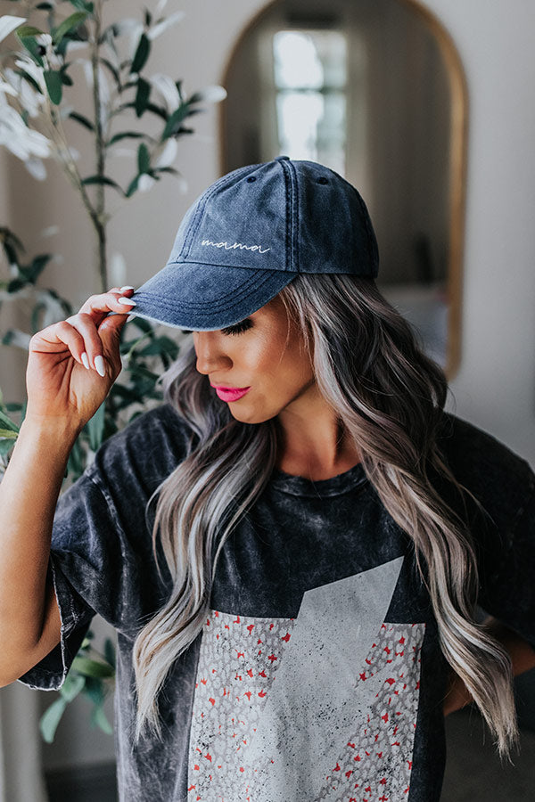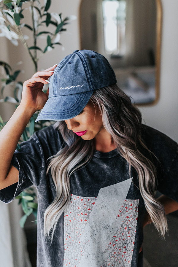 Be a cool mom in our adorable navy colored baseball cap featuring a stylish rounded bill, an adjustable back, and cute 'mama' embroidery!