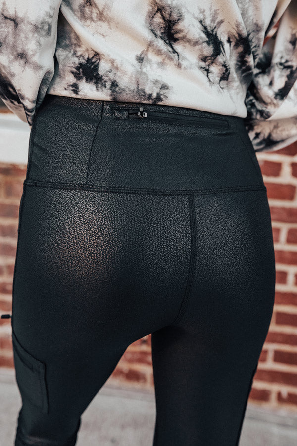 Our sporty black "Mimosa Motivation" active legging features sleek four way stretch material with a figure hugging fit, moisture wicking, a faux leather appearance, a high elastic waistband for tummy control, two accent phone pockets on the sides and one zip closure back pocket, and a sleek pant silhouette that falls into straight ankle length hems! This adorable athleisure piece styles perfectly with a variety of sports bras or tank tops and trendy sneakers for the ultimate two piece workout set!
