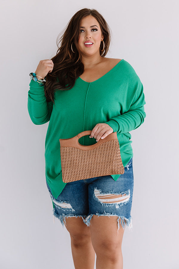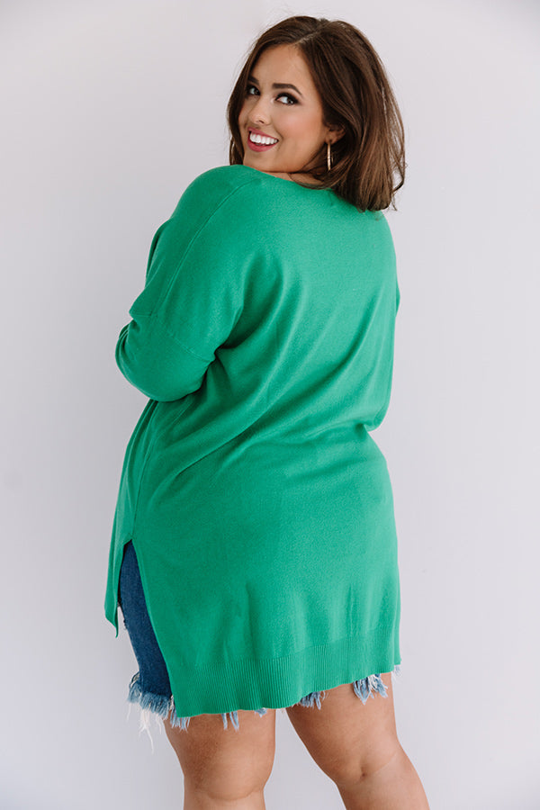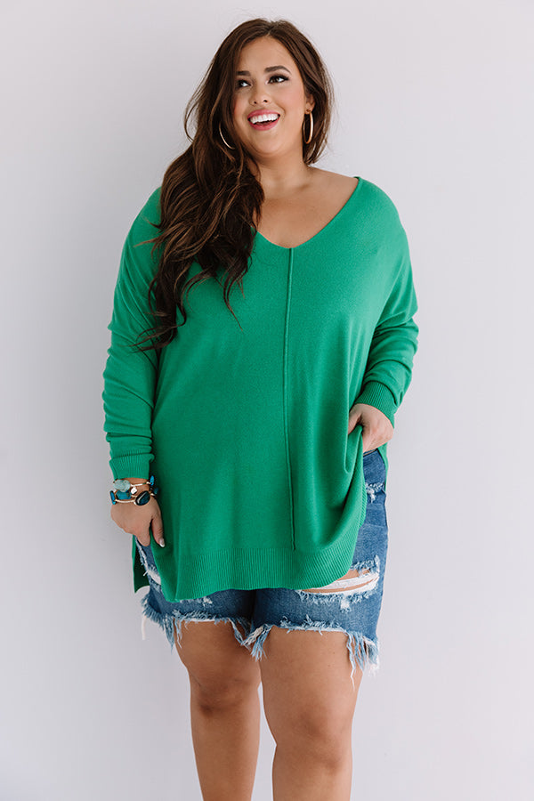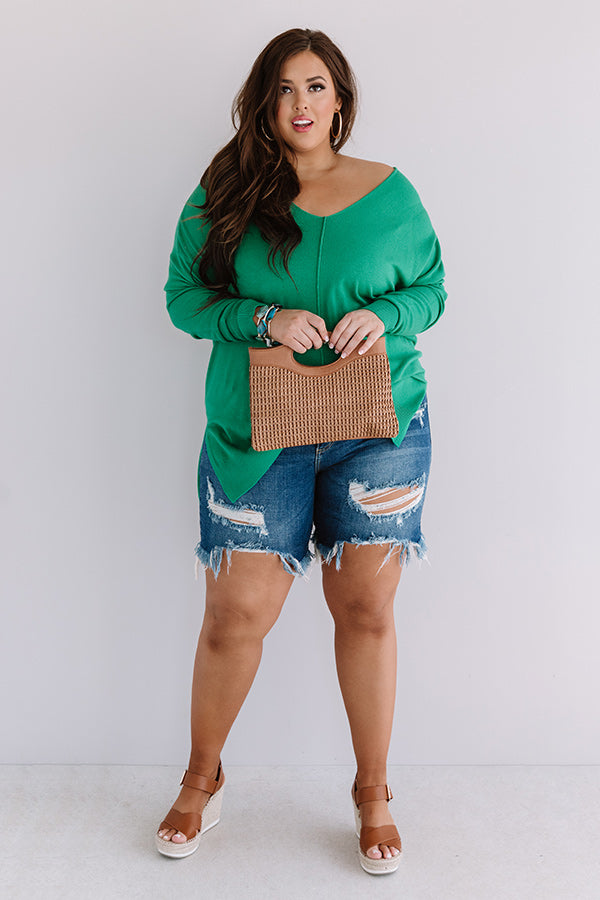 Plus Size - It's undoubtedly a "great idea" to add this adorable kelly green shift tunic to your cart with its soft lightweight material, a wide v-cut neckline that can be worn off one shoulder, long loose sleeves, and an ultra relaxed silhouette that falls into a straight upper thigh length hemline with high accent side slits! You can style this spring cutie a variety of ways, like with some distressed denim shorts and a brown wedge and crossbody, but you can also wear it with some white flares, "The Melina Heel in White," and our "Quay X JLO Reina Cat Eye Sunnies in Ivory!"
