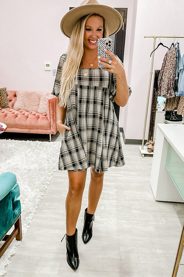 Transition from season to season effortlessly in our adorable 'Ready For Denver' dress featuring lightweight flowy material patterned with a black plaid print, a square neckline and upper back with a tie closure, puff half sleeves, and a relaxed but flattering babydoll silhouette that falls into a straight mid-thigh length hemline!