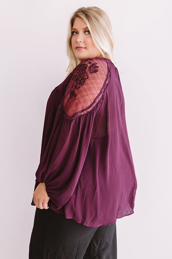 Seriously Smitten Lace Shift Top In Windsor Wine Curves