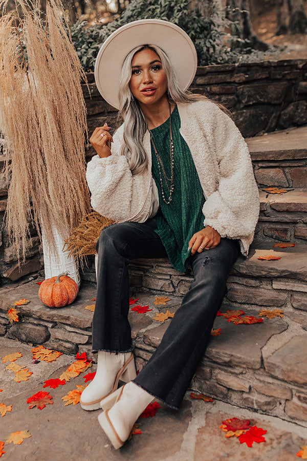 Keep your fall look casual but cute with our simple hunter green 'Smooth Terrain Shift Top' featuring lightweight material with ribbed texturing, a rounded neckline, loose bell half sleeves with rolled cuffs, and a slouched silhouette that ends in a straight hemline with split accent sides!