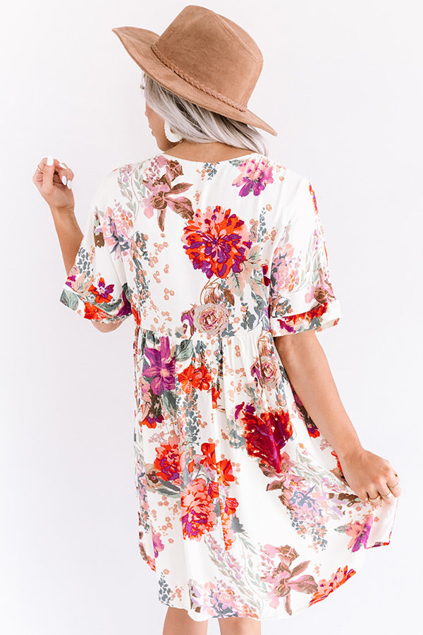 Stroll through summer in style with this eye-catching piece featuring lightweight breezy material patterned with a bold and colorful floral print, a v-cut neckline, short loose sleeves, and a relaxed silhouette that falls into a straight mid-thigh length hemline! This vibrant piece styles perfectly with a fringe tote, statement earrings, and a brown block heel and faux suede hat, but you can also wear it with "The Bowen Wedge in Blush!"