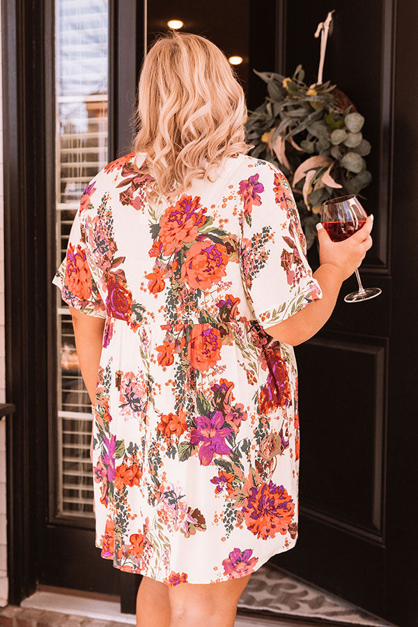 Plus Size - Stroll through summer in style with this eye-catching cream colored dress featuring lightweight breezy material patterned with a bold and colorful floral print, a v-cut neckline, short loose sleeves, and a relaxed babydoll silhouette that falls into a straight mid-thigh length hemline!