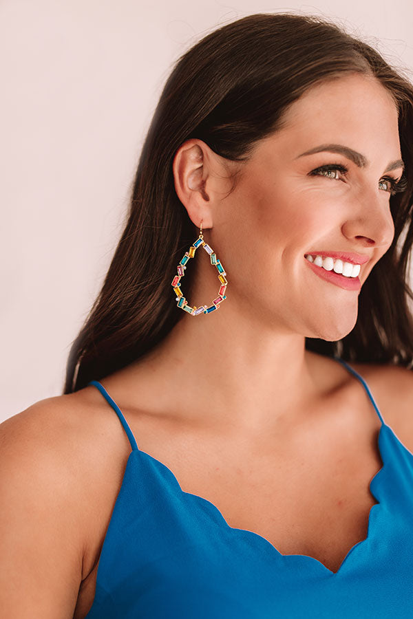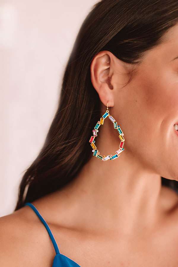 You will set a stylish jewelry standard in these shining earrings with their multi coldored gems and diamonds set inside a dangling golden teardrop!