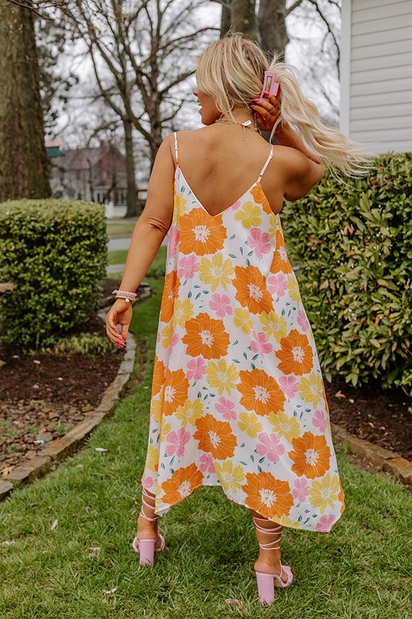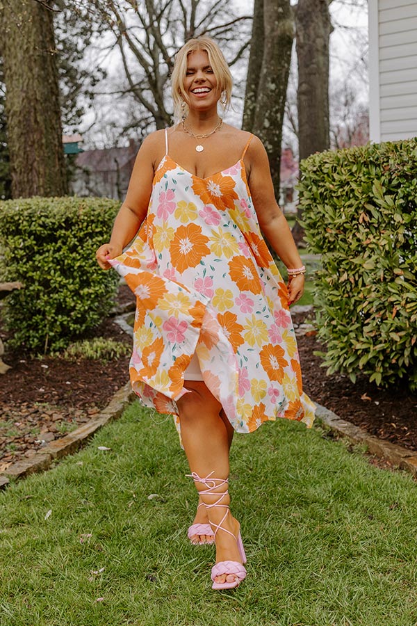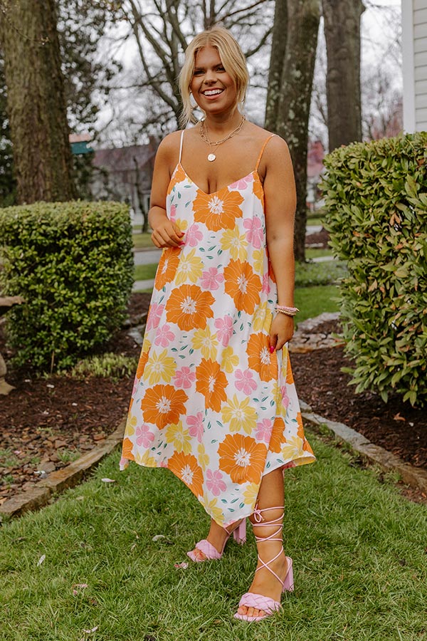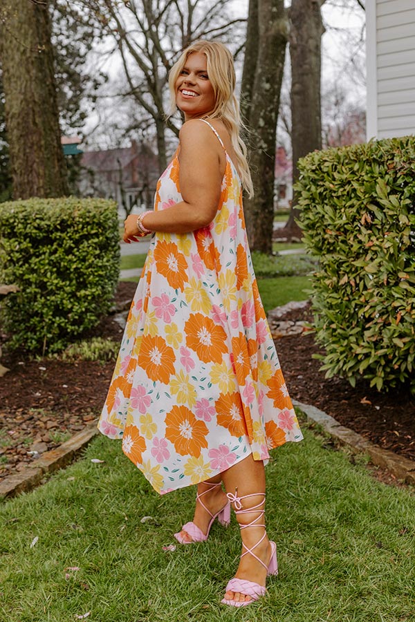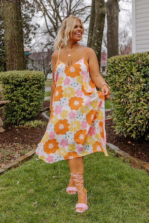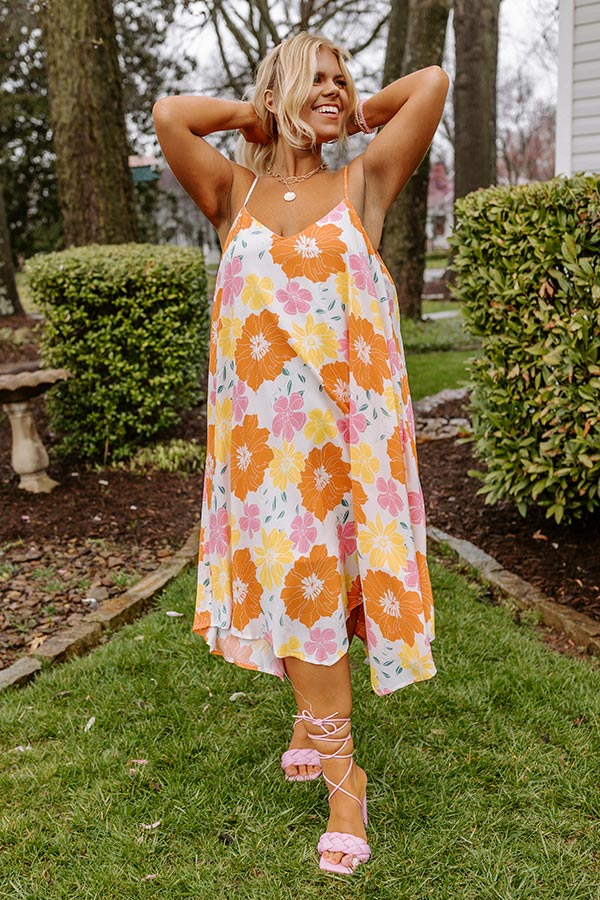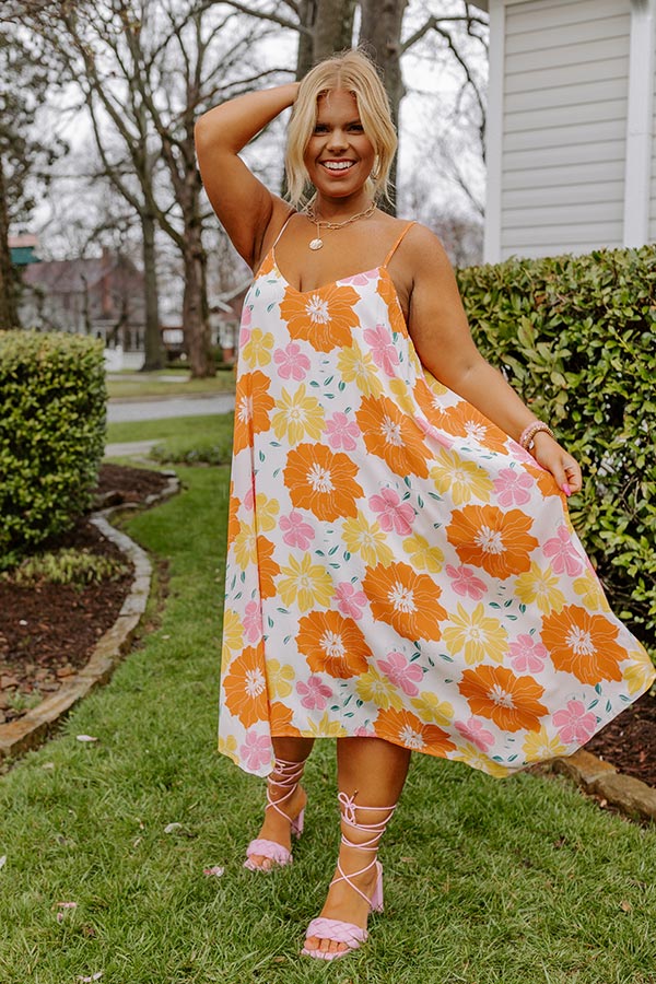 Sweet Georgia Peach Floral Midi Dress In Orange Curves