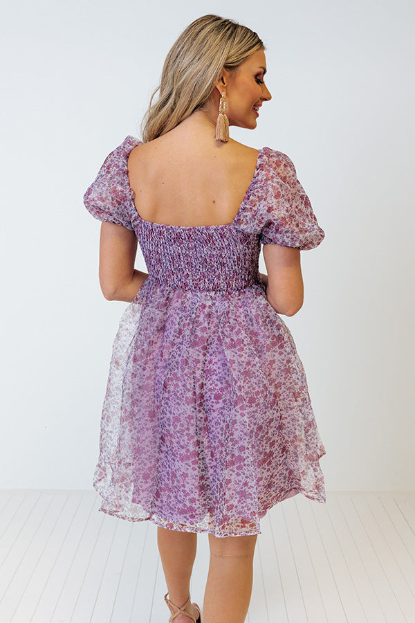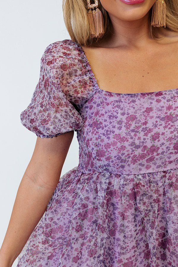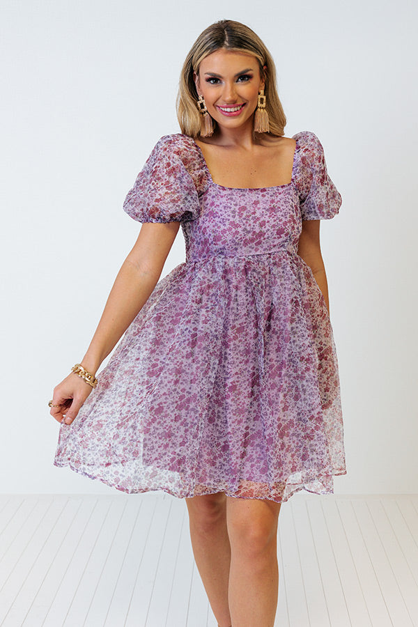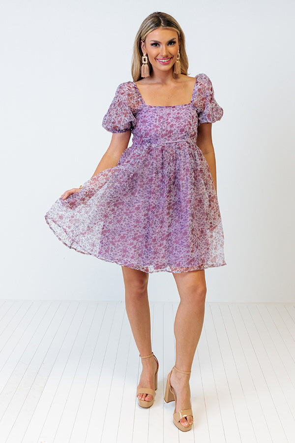 You will look so sweet in this darling purple dress featuring lightweight material patterned with a small floral print, a square neckline and upper back, short puff sleeves, and a relaxed babydoll silhouette that falls into a straight mid-thigh length hemline!