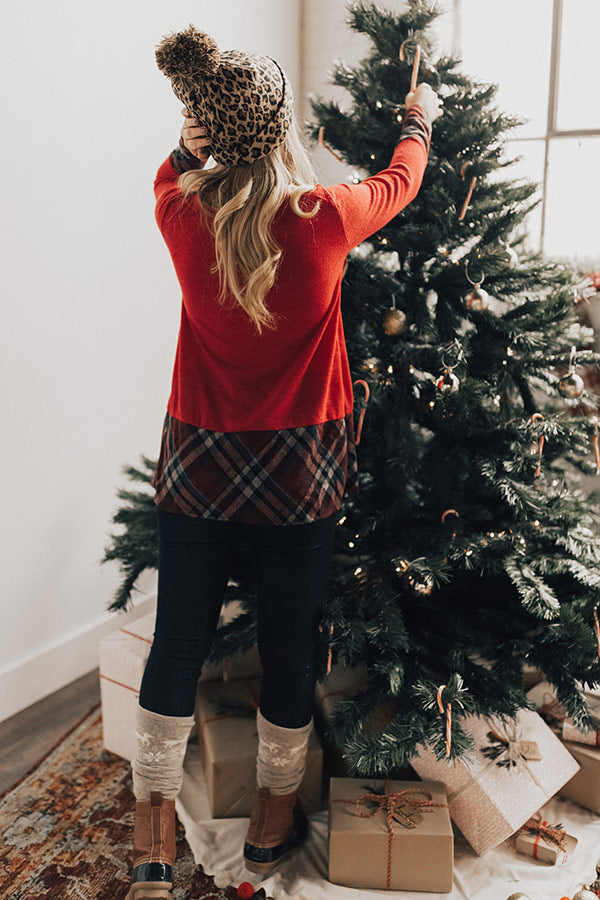 Not your average Christmas sweater! Show up to your next holiday party in style! This sweater features a fun silver sequin reindeer with a plaid hemline and plaid ends on the sleeves. This cozy sweater is lightweight, comfy, and essential for the holiday season! Throw this fun top on with a pair of skinnies and your fave booties for a look that won't quit! PS) This festive reindeer top has pockets which makes it that much better! Measurements
