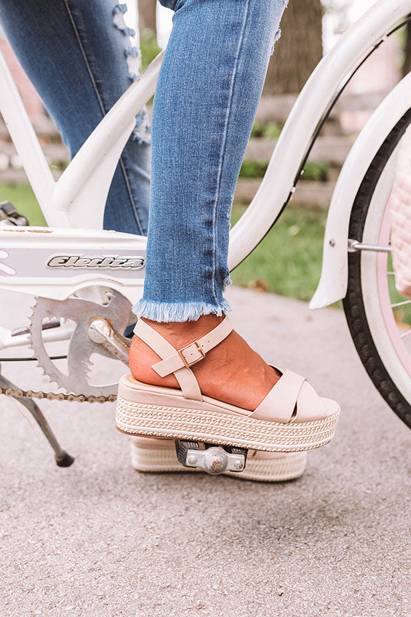Slip from season to season in style with adorable birch colored 'Cressida Espadrille' featuring a lifted but flat 2-inch sole with twisted detailing all around, two crossed over-the-foot straps, a rounded open toe, and a slip on silhouette with a buckled ankle strap! This espadrille runs more true to size.