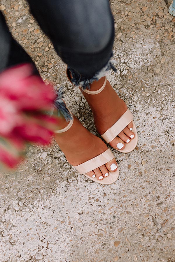 Add a little glamorous simplicity to you already amazing OOTD with our adorable neutral hued "Milan Patent Heel" featuring 4-inch block heels, an over-the-foot strap with open toes, a buckled ankle strap, and closed heels!