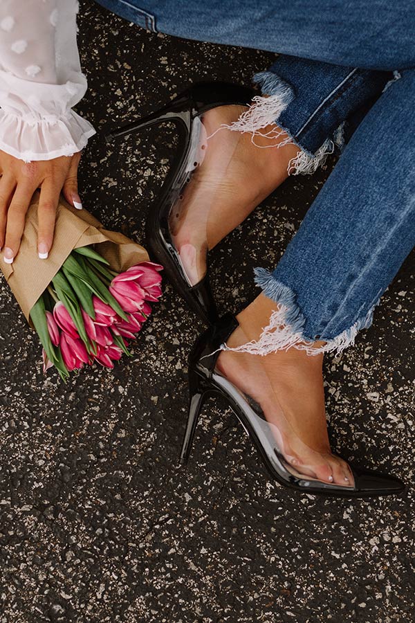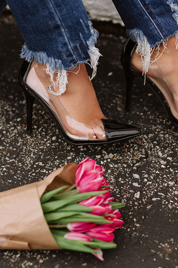 Stay looking stunningly chic with the adorable black "Winnie" heel featuring a 4-inch patent heel, clear side panels with ventilation holes, and pointed closed toes and heels!