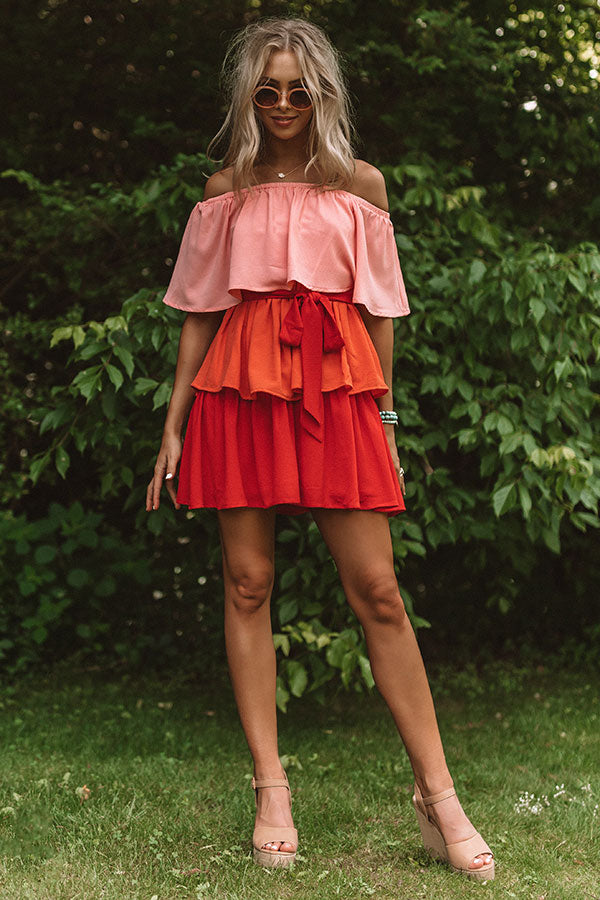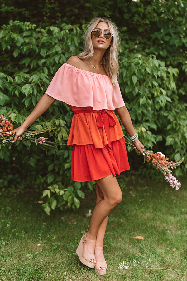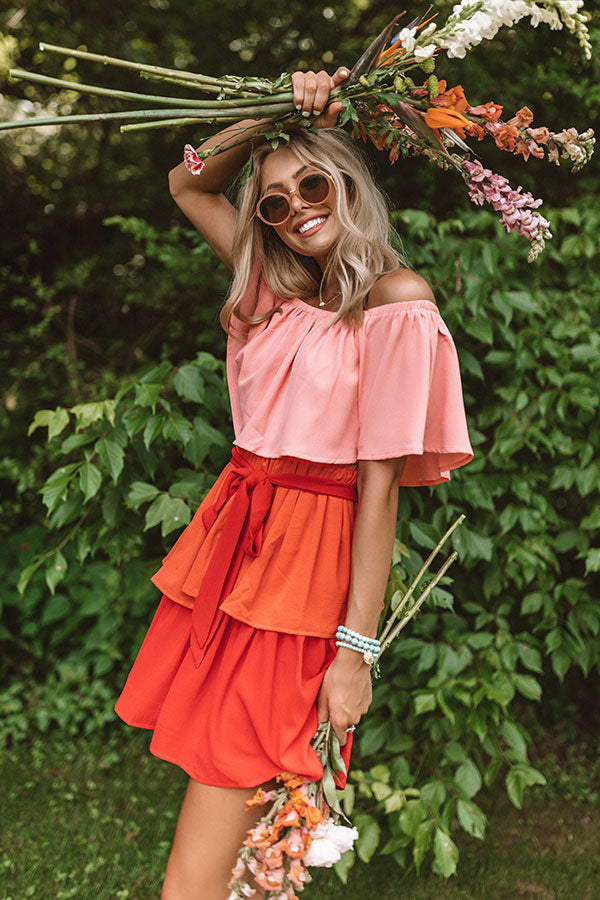 The most beautiful thing you can wear is confidence and the second most beautiful is an stunning dress! You will feel like crying "tiers" of joy when you put on this beauty with its colorful layers, tie belt, and off-the-shoulder fit! Pair with a nude heel and sunnies or a contrasting heel and necklace like our "Mary Kate Faux Suede Heel in Light Turquoise" and "Soho Starlight Marble Necklace in Turquoise" for a romantic and eye catching evening look! Measurements