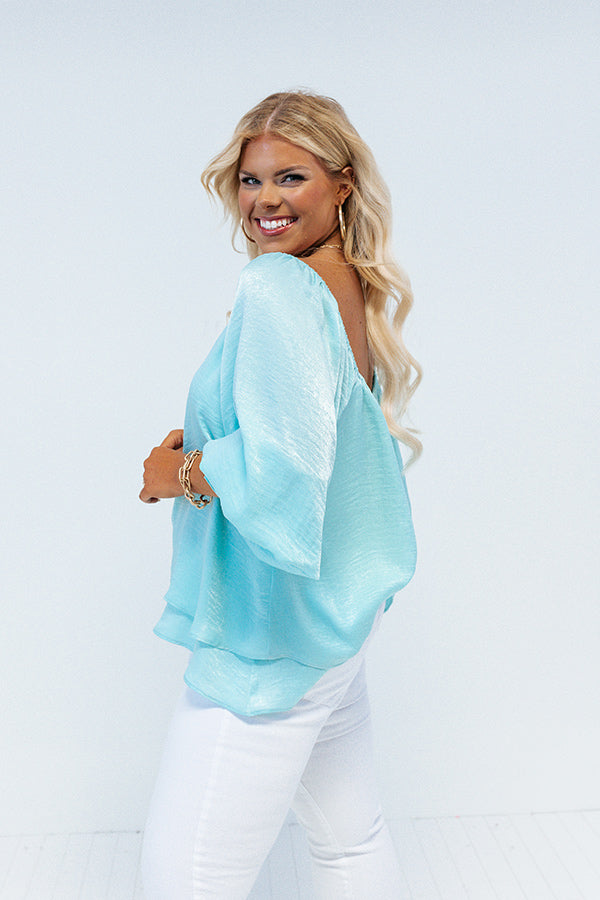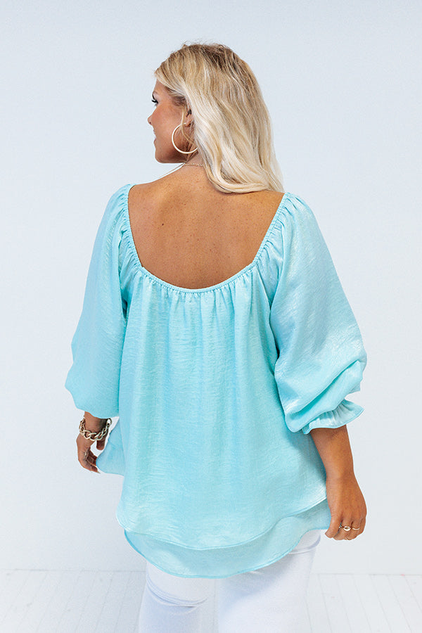 We have no doubt you will look truly chic in this elegant light turquoise hued plus size shift top featuring lightweight satin material, a square neckline and upper back, long bishop sleeves with smocked cuffs, and a relaxed silhouette that falls into a straight hemline! on products Measurements