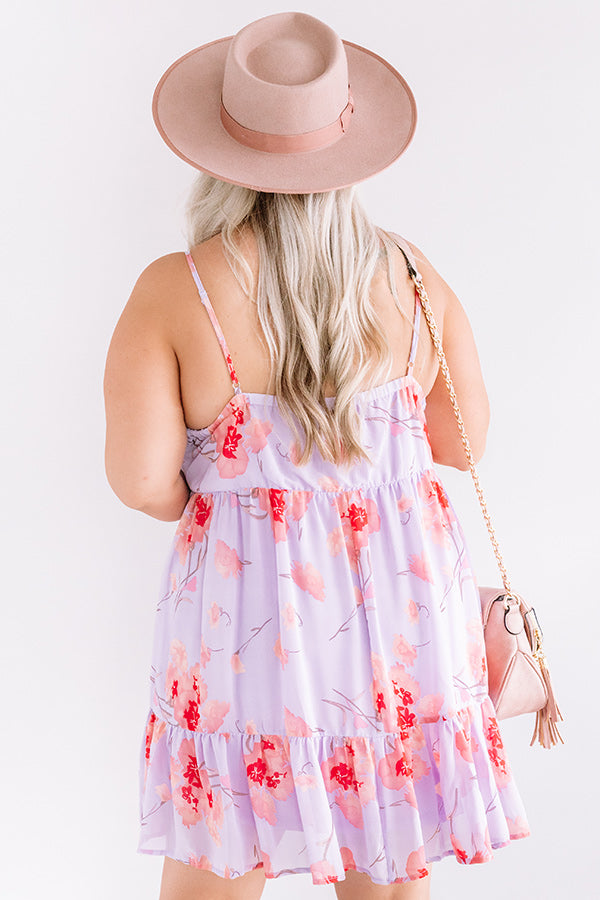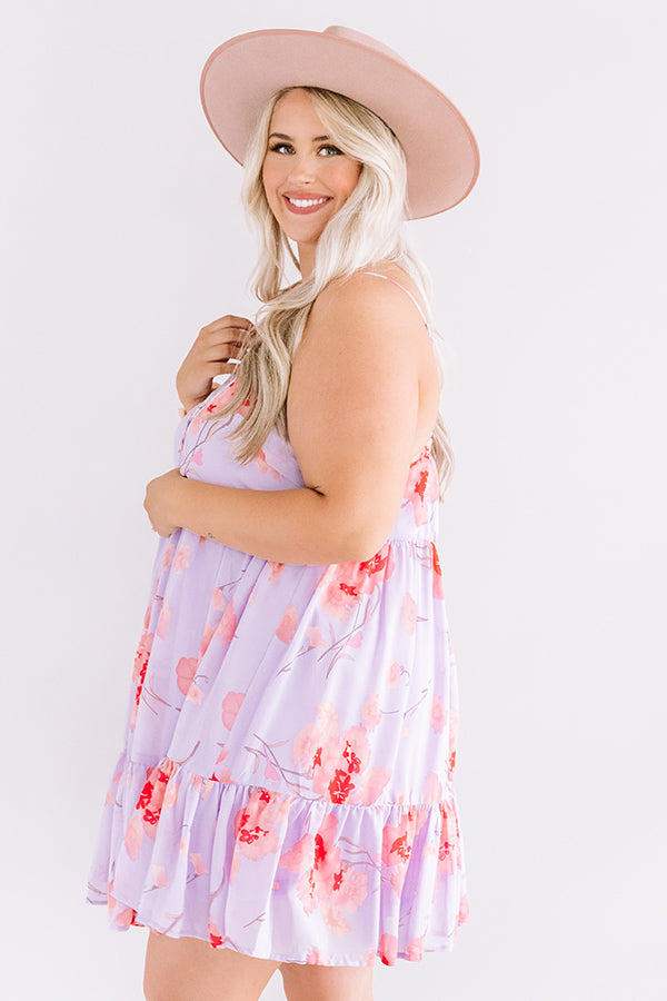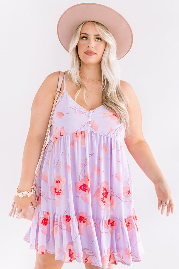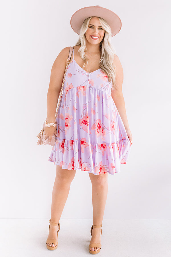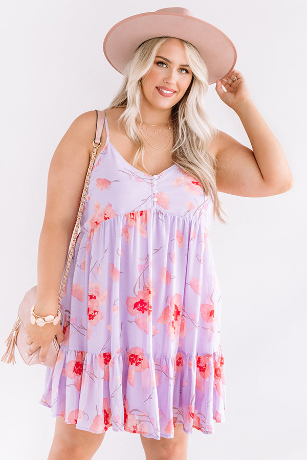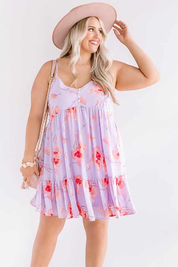 Plus Size - Step up your summer style game with our adorable light purple "Waterfall Romance" dress featuring lightweight breezy material with a pink hued floral print, a button up bodice with a v-cut neckline, adjustable spaghetti straps, and an ultra relaxed babydoll silhouette that falls into a wide peplum bottom with an uneven mid-thigh length hemline! We have styled this flirty piece with some neutral heels and a blush crossbody and wool hat, but you can also wear it with "The Sydney Wedge in Gold" and our gold "Spread Your Wings Butterfly Hair Clip Set!"