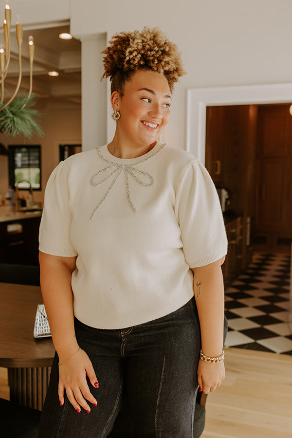 Bow-tiful Moment Embellished Sweater Top in Cream Curves
