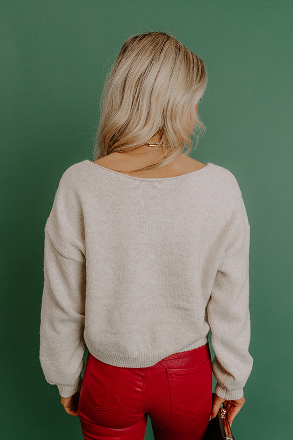 Pretty Little Bows Open Back Sweater in Oatmeal