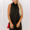 - Find your happily ever after in this fabulous dress! - Unlined material - A ruffled mock neckline with back closure and a keyhole detail - A sleeveless cut - A shift dress silhouette that ends in a mini dress silhouette that ends in a straight hemline