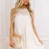 - This mini dress is all about charm! With its sweet crochet design, it's perfect for those sunny days when you want to look cute and feel stylish. - Fully lined material - A round neckline with back button closure and a keyhole detail - A crochet bodice - A sleeveless cut - A flowy silhouette that ends in a straight, mini dress length hemlines