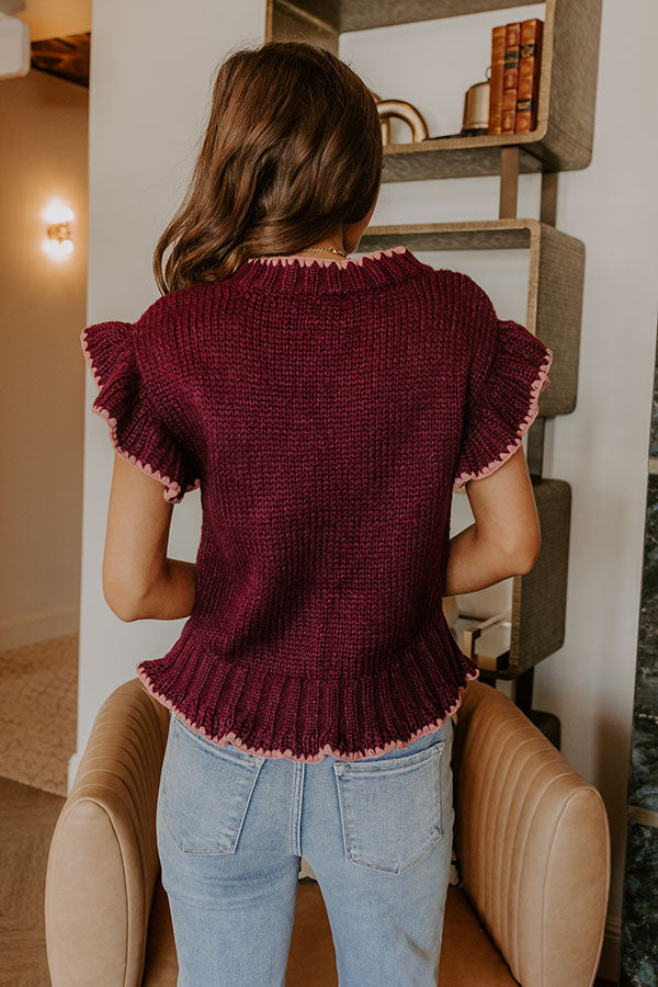 Flowers And Frills Knit Top in Wine