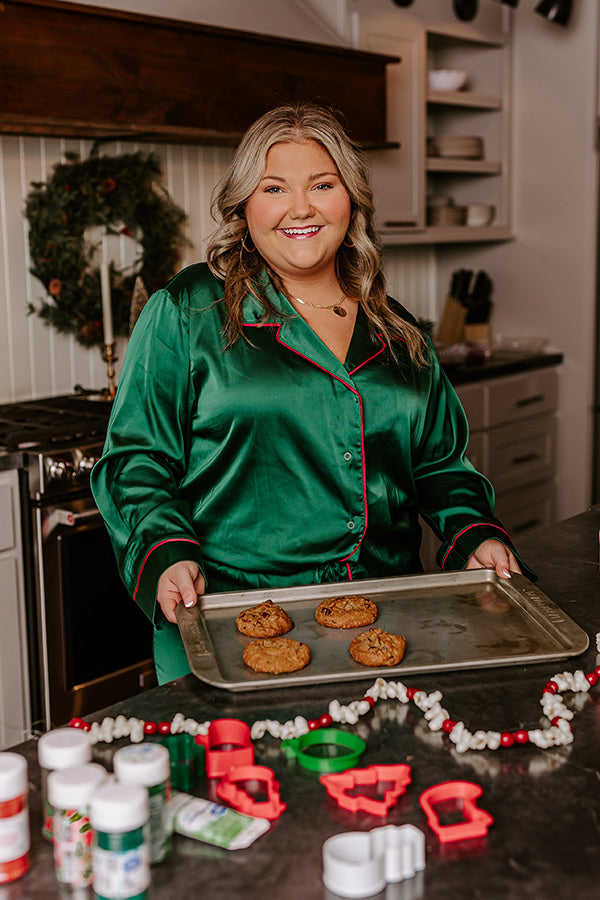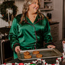 Feeling Luxurious Satin Pajama Top in Hunter Green Curves