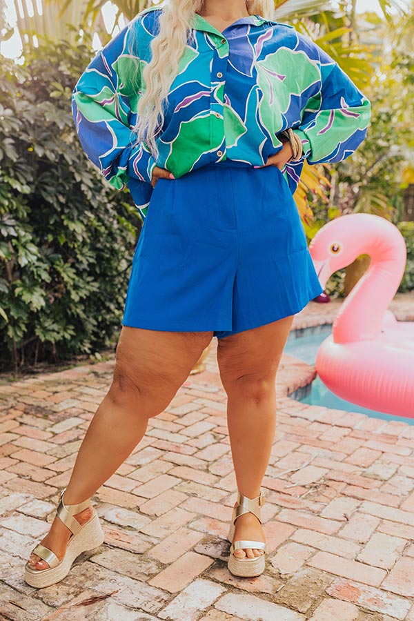 Ready To Remix High Waist Shorts In Royal Blue Curves