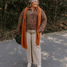 - Unlined knit material featuring green, cream, pumpkin, and brown hues