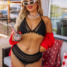Cozumel Adventure High Waist Pom Bikini Bottom in Black Curves