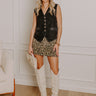 - Turn heads with this trendy denim skirt featuring a bold leopard print! A flirty wardrobe staple, it's the ultimate neutral for pairing effortlessly with sweaters or knit tops. Perfect for creating statement outfits that stand out anywhere you go!