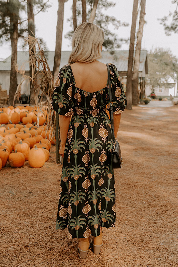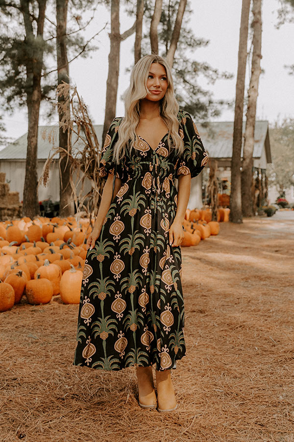 - Chic and playful, this pretty midi is a total charmer! Its smocked waist and lovely print give it the dreamiest vibe.
