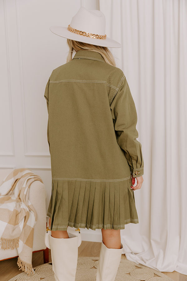 Charming Views Denim Mini Dress in Olive