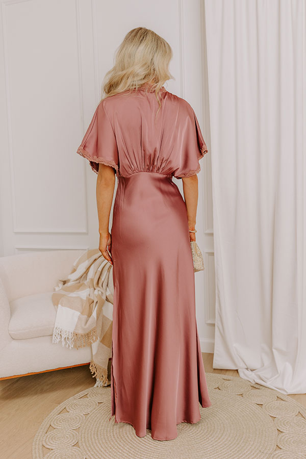 - Turn heads wherever you go with this dreamy maxi! Lace details and a satin finish make it effortlessly sweet and unforgettable.