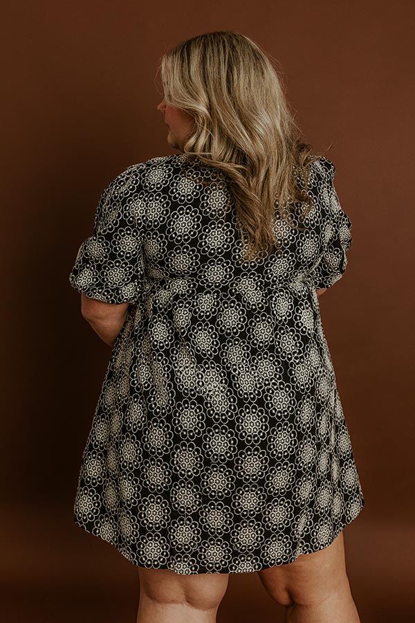 - Your wardrobe just got cuter with this embroidered mini dress! A playful drawstring neckline adds the perfect detail to this trendy piece.