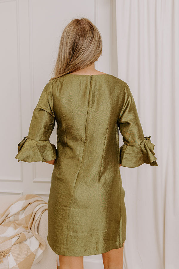 - Polished perfection has arrived with this fabulous mini dress! With flared cuffs and bow accents, this piece has all the sweetest details.