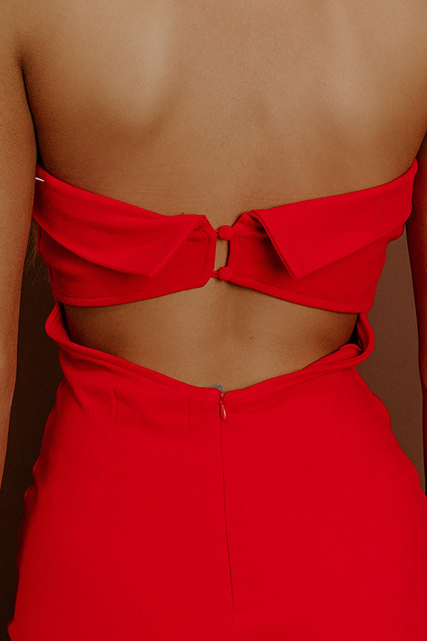Rooftop Soiree Velvet Midi Dress in Red