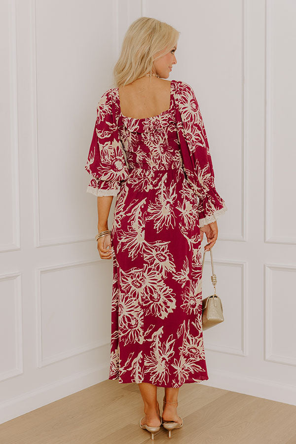 Sunflower Fields Smocked Midi Dress in Sangria