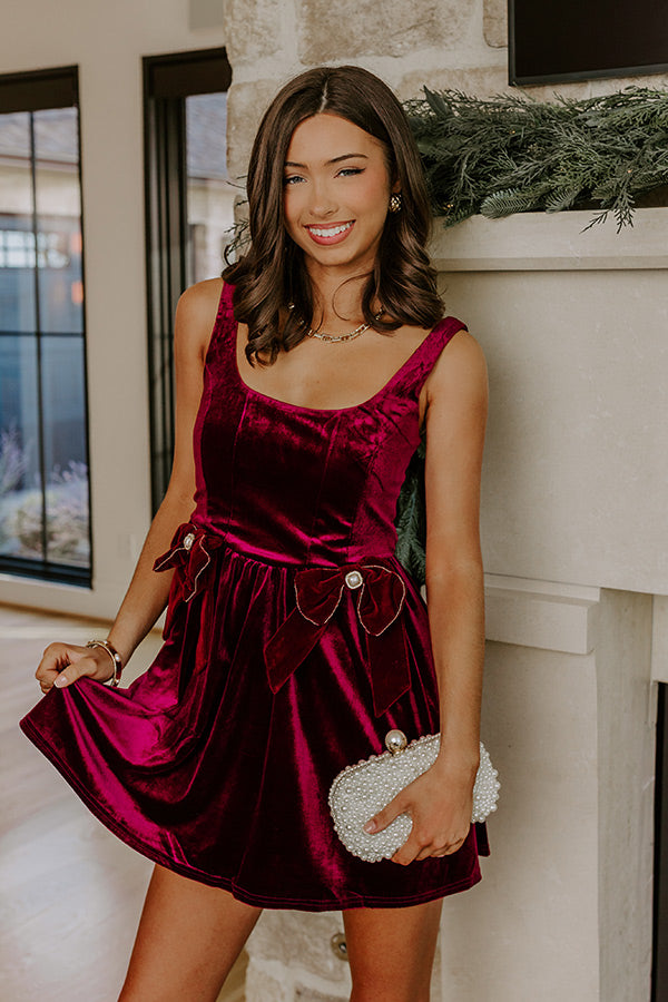 - Shop this velvet mini dress for festive celebrations and stylish nights out! Featuring faux pearl and rhinestone embellished bows, this glamorous dress is perfect for holiday parties and evening events.